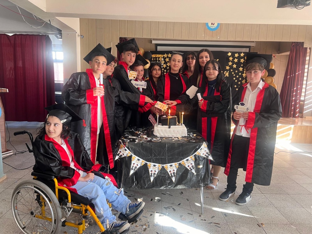 2023-2024 Eğitim Öğretim Yılı Mezuniyet Törenimizi gerçekleştirdik. Öğretmenlerimizden mezuniyet belgelerini alan öğrencilerimiz 4 yıllık ortaokul serüvenlerinin coşkusunu kep atarak gösterdiler. Mezuniyet törenimize katılım sağlayan başta İlçe Milli Eğitim Müdürümüz Sn. Kemal SÖĞÜT ve Okul Müdürümüz Sn. Mustafa Edip BULUT olmak üzere değerli öğretmenlerimiz ve değerli velilerimize teşekkür ederiz.